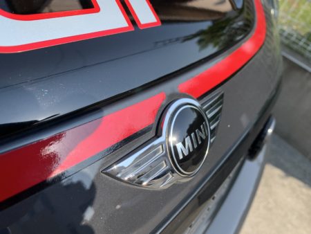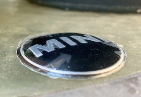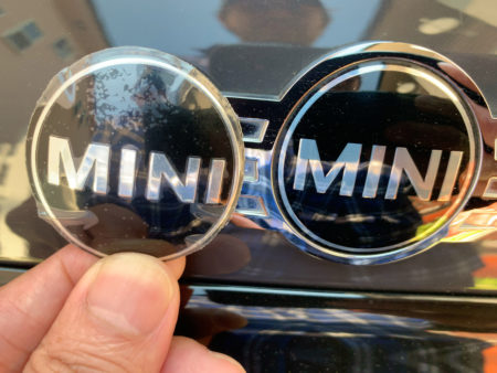 よくよく調べてみると、この「MINI」のロゴの丸い部分は、「シール(ステッカー)」が貼られていただけだったんですね。てっきり「塗装」された状態で、土台に埋め込んであるものとばかり思っていたので、まさかシールだったとは・・・という感じです。